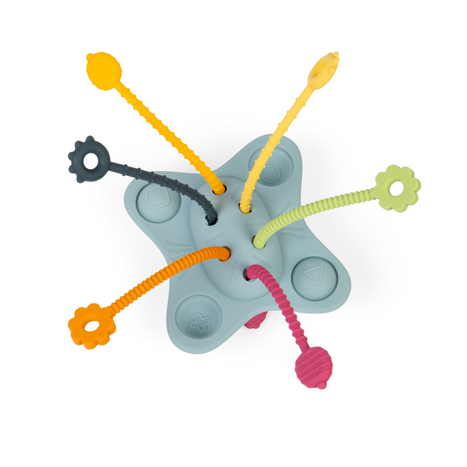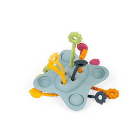 Fidget fun awaits with our silicone Pull, Push and Pop Toy! A sensory treat for tots, this versatile baby and toddler toy comes with four push-and-pop buttons and six pull strings in a range of shapes, textures, and colours for kiddies to discover.