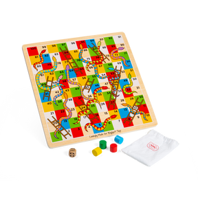 This set includes everything you need for hours of competitive fun, including dice and 4 colourful counters. This colourful wooden Snakes and Ladders board game is a great way to develop basic math skills such as counting, addition and subtraction.