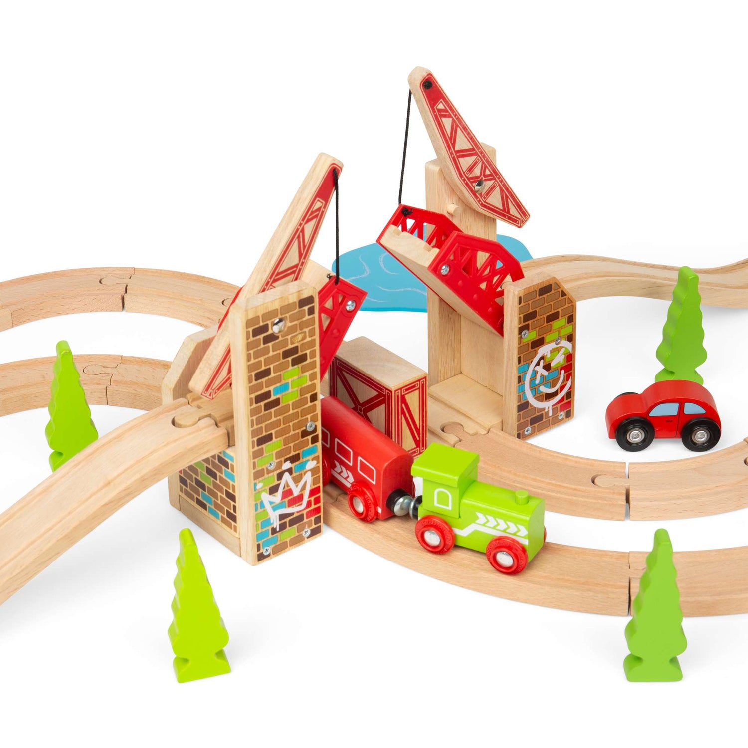 Double Lifting Graffiti Bridge for Wooden Train Sets by Bigjigs Rail Maximises Play Creativity and Urban Style