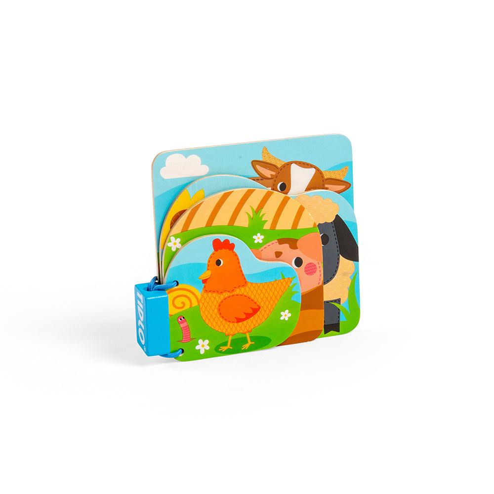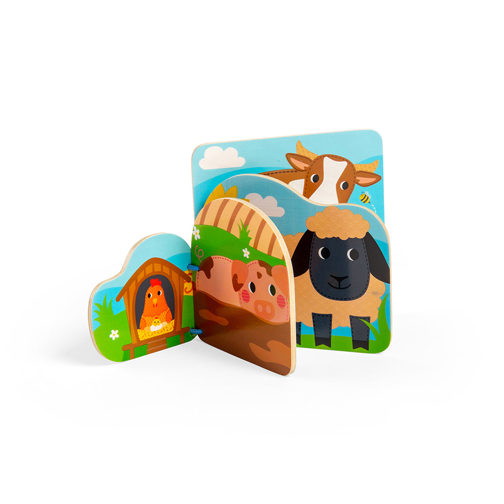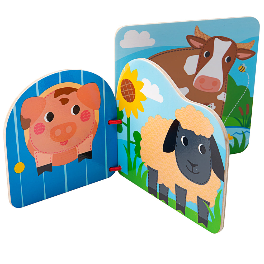 Introduce little ones to a world of imagination and storytelling with our Wooden Picture Books. With each reading session, a new story can come to life. Watch as the chicken pecks at their dinner, or as the pig rolls about in the mud. This storybook is a great way to encourage storytelling and discussion, as little ones discuss what is going on in the scene and develop vocabulary. Learn all about different farm animals and where they live. Features a chicken, pig, sheep, cow & more. Jungle Animal Picture Book also available. Made from high quality, responsibly sourced materials. Conforms to current European safety standards.