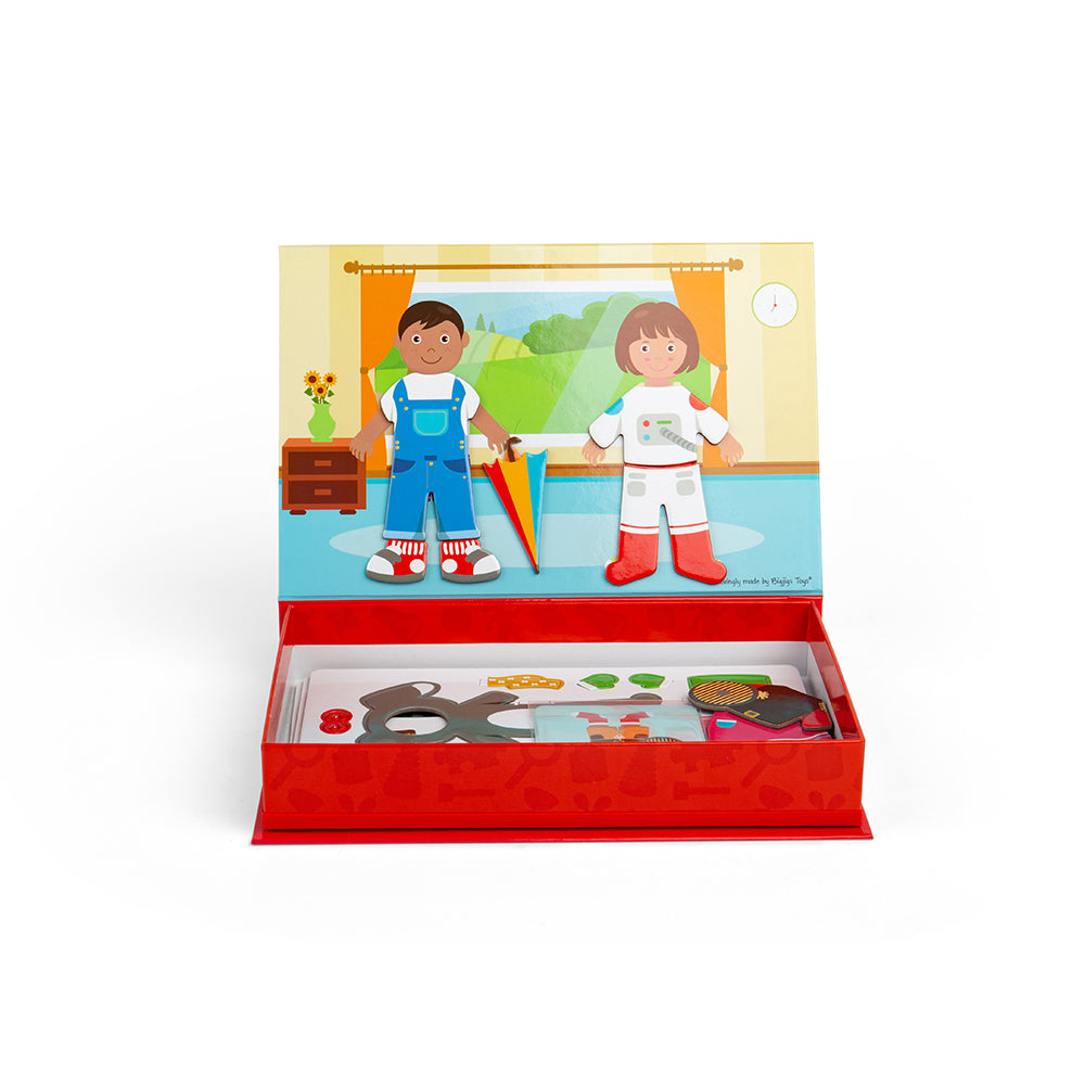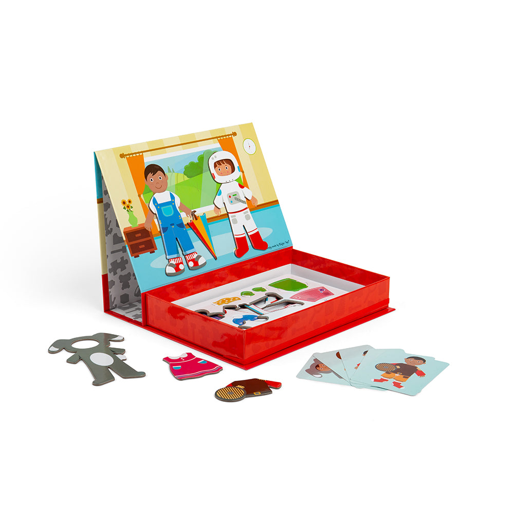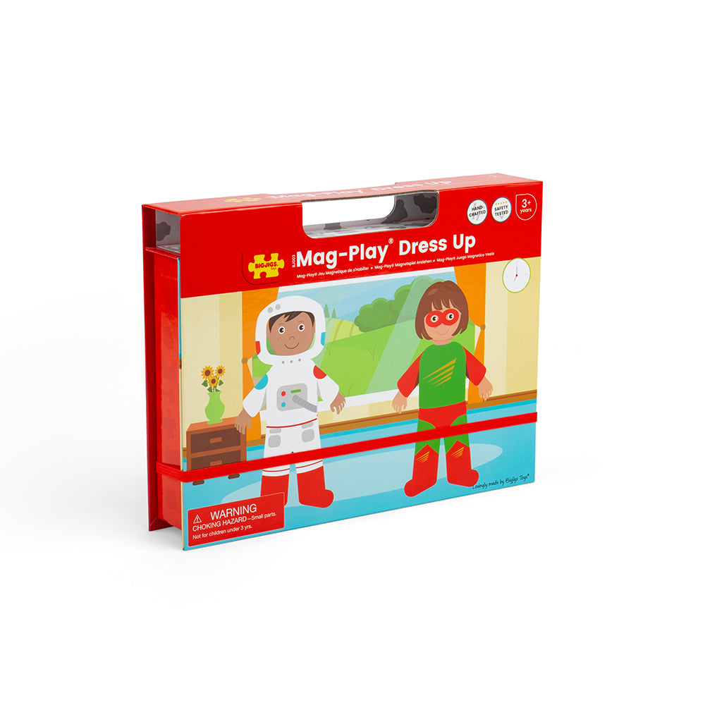 Encourage creativity and storytelling with the new Mag-Play range from Bigjigs Toys. Dress up the boy and girl in different magnetic outfits by copying the included image cards, or little ones can get creative and create their own outfits. There are plenty of play pieces to ensure every play session is unique. A great way to encourage storytelling and develop creativity. Supplied in a sturdy box with a magnetic lid for easy storage. Made from high quality, responsibly sourced materials. Conforms to current European safety standards. Age 3+ years.