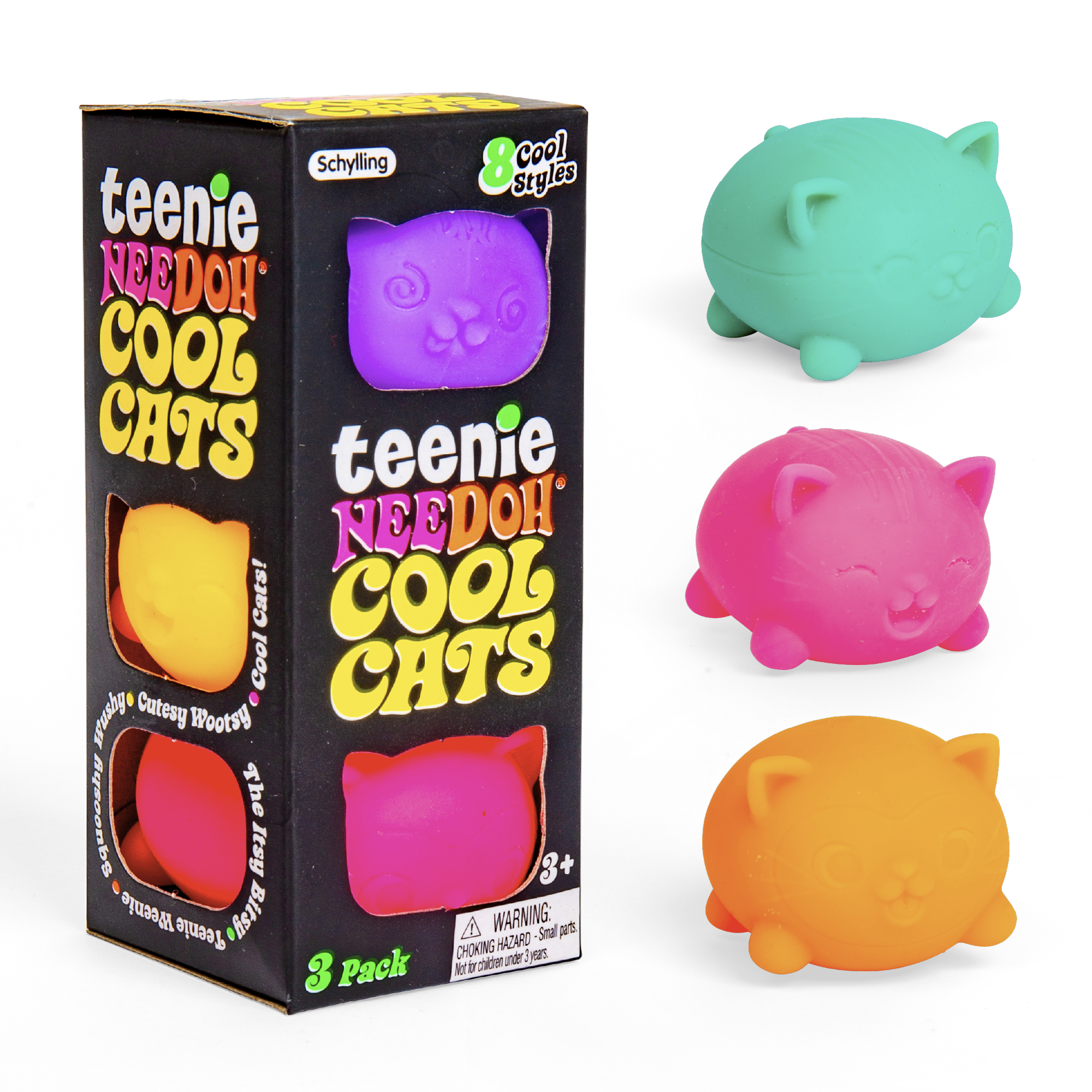 Teenie NeeDoh Cool Cats Fidget Toys 3 Pack for Kids Stress Relief Focus Non Toxic Sensory Gift Ages 3 Plus