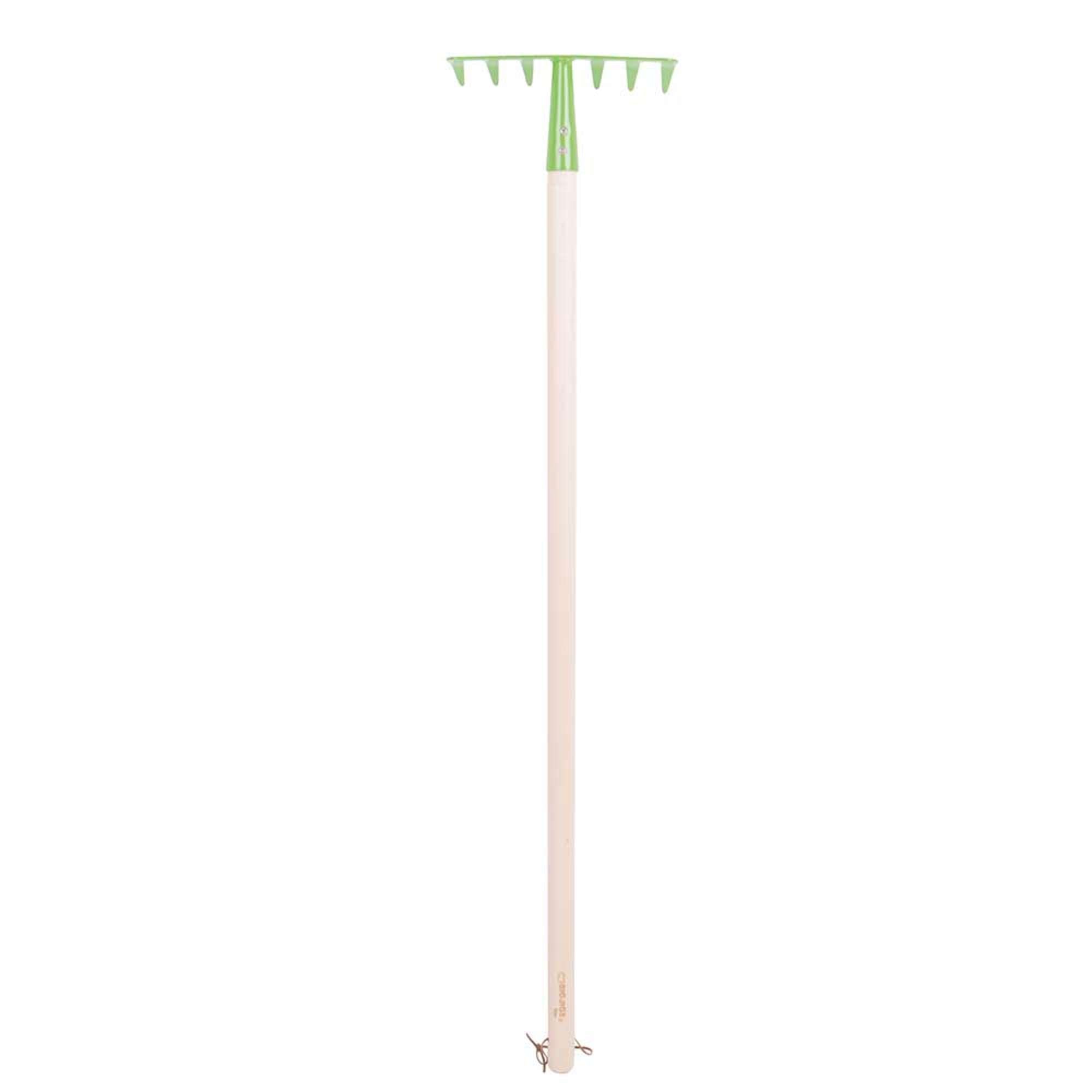 With a strong wooden handle, it is the ideal garden accessory for little gardeners, encouraging them to help out in the garden. The rake is a bright green colour to help blend in with the outdoors.