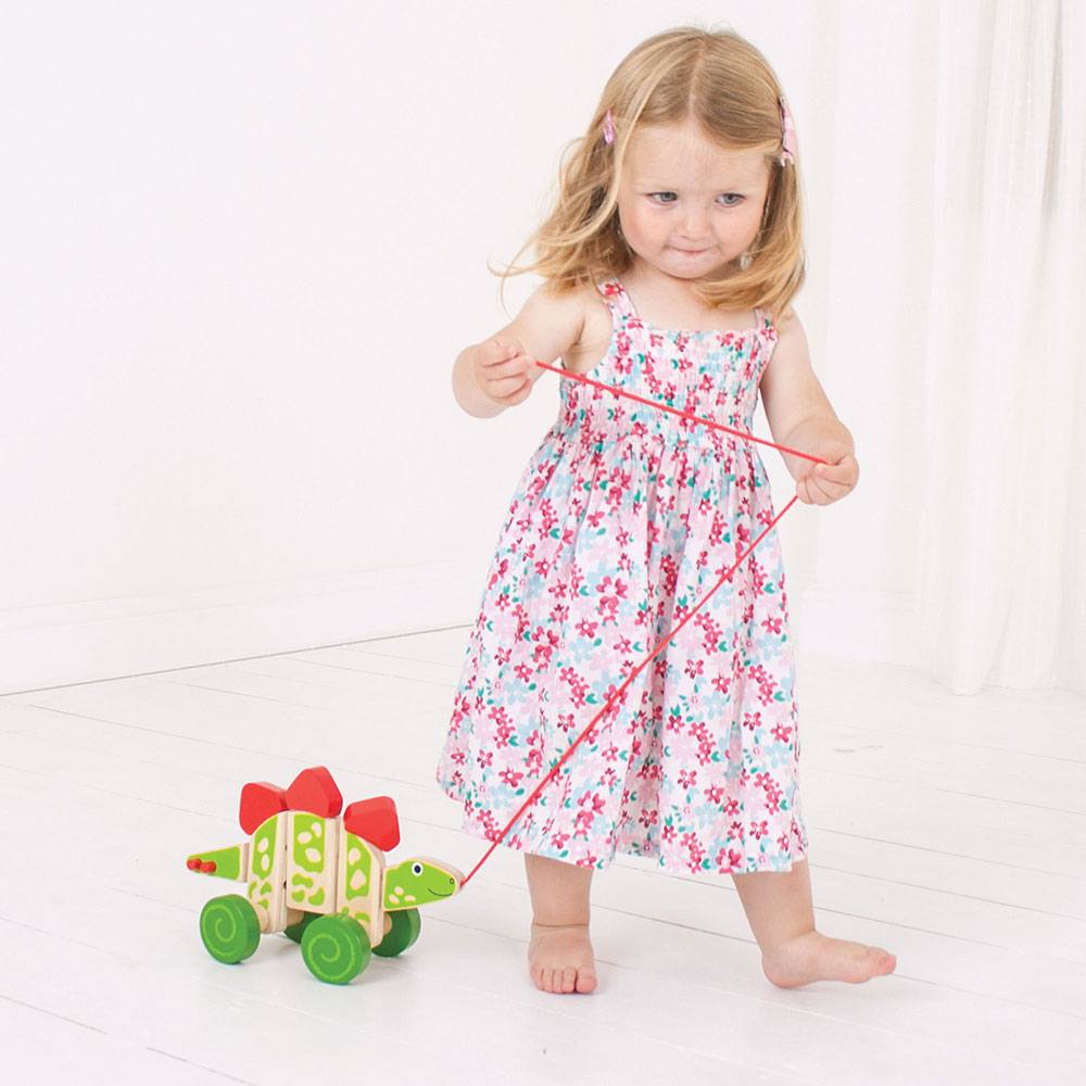 Roar! Our Wooden Dinosaur Pull Along Toy is ready for a new adventure! Encourage your little one's dexterity and confident mobility with this bright pull along toy Stegosaurus. Great for nurturing creative ideas and imaginative play.
