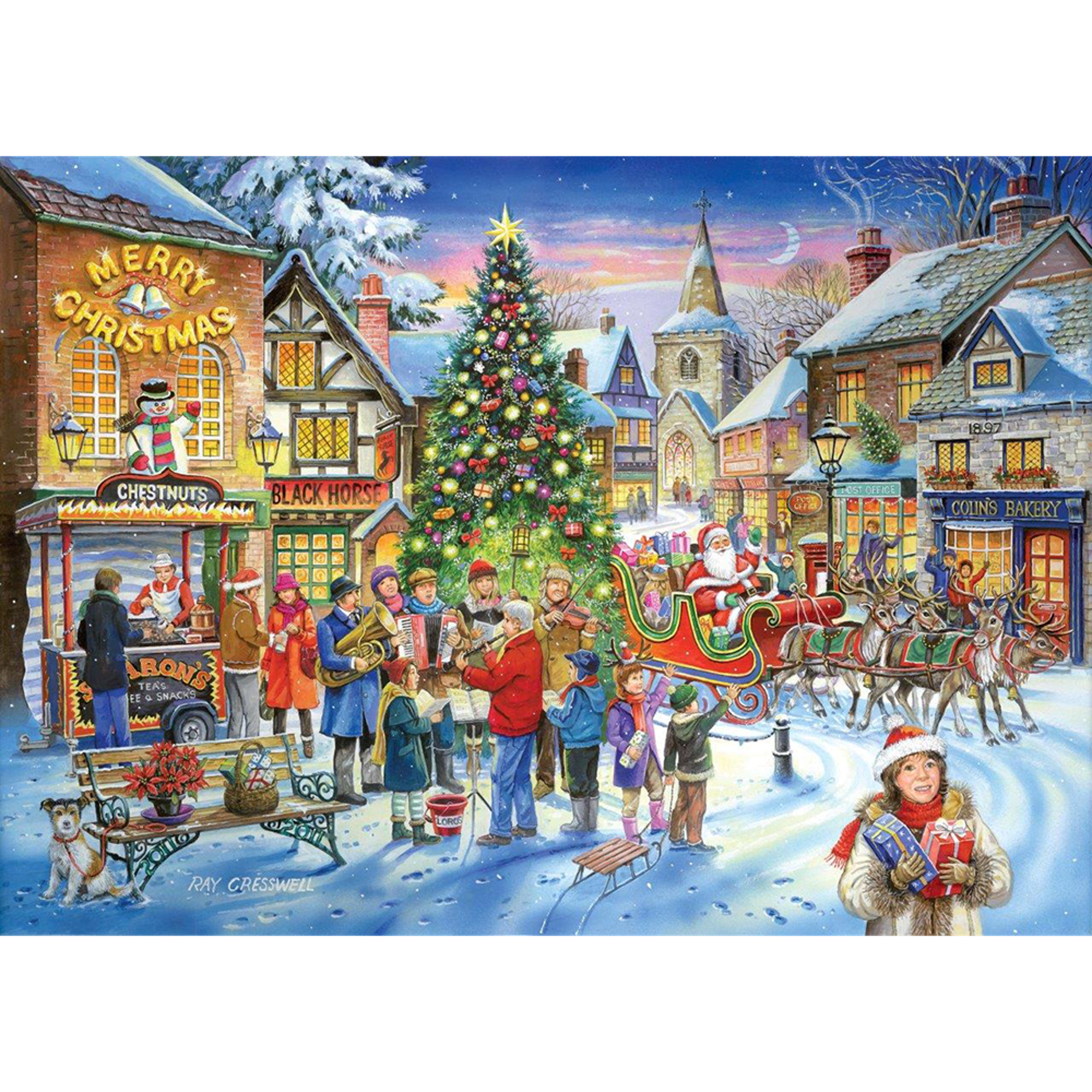 Relax and unwind with our enchanting No.6 - Christmas Shopping 500 piece jigsaw puzzle. Ideal for both beginners and puzzle aficionados, this 500 piece jigsaw has been intricately illustrated by talented artist Ray Cresswell. All of our 500 piece jigsaw puzzles are sustainably made from premium quality FSC® Certified board, promising a satisfying and seamless assembly experience. Completed puzzle dimensions: 34 x 48cm.