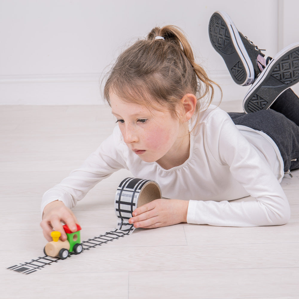 Bigjigs Toys Railway Tape for Kids Encourages Imaginative Play with Easy Peel Adhesive for Floors Walls and Furniture