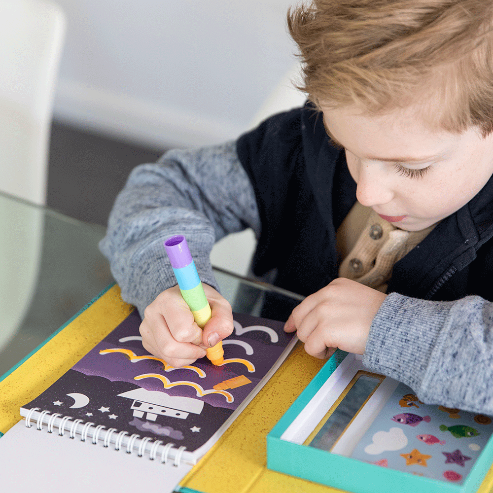 The silk crayons glide across the colouring book pages, so are easy for little learners to use. Use the crayons to draw and colour in the jam-packed beach-themed colouring sheets. Safely store the crayons and colouring pages away in the useful storage box.