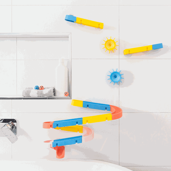 The marble run comes with 21 pieces (including 4 plastic marbles) so kids can create their own waterslide masterpiece. It can be secured to the side of the bath or bath tiles using suction cups.