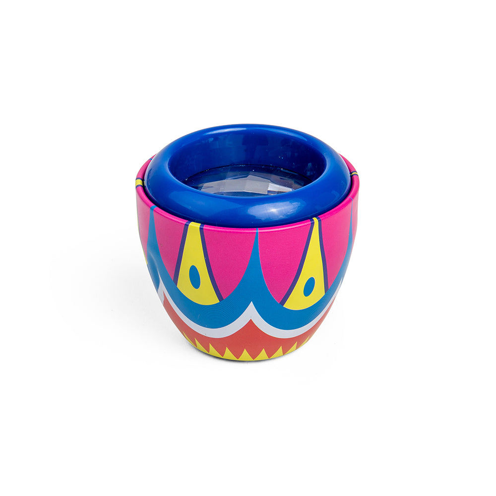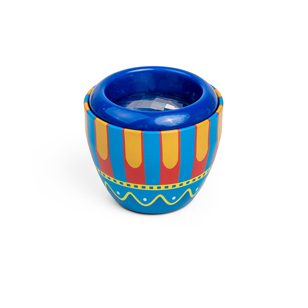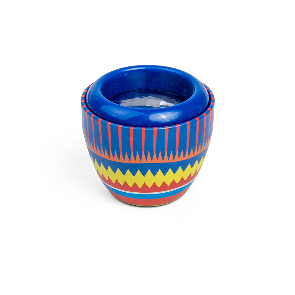 Tin Fly's Eyes helps kids to examine things in detail and from different visual perspectives. Six colourful vintage designs available (pack of 3), chosen at random. Pocket-sized tin kaleidoscope that measures just 6.35cm x 6.35cm.