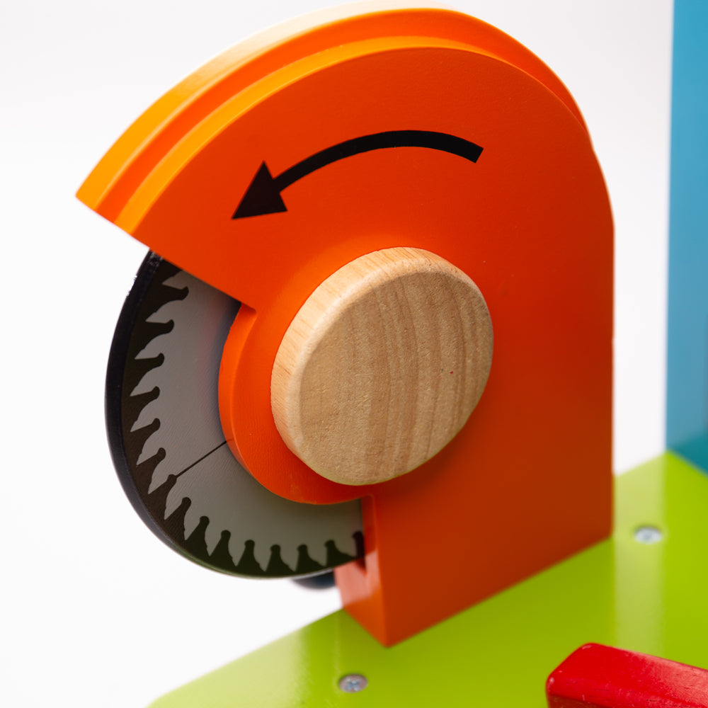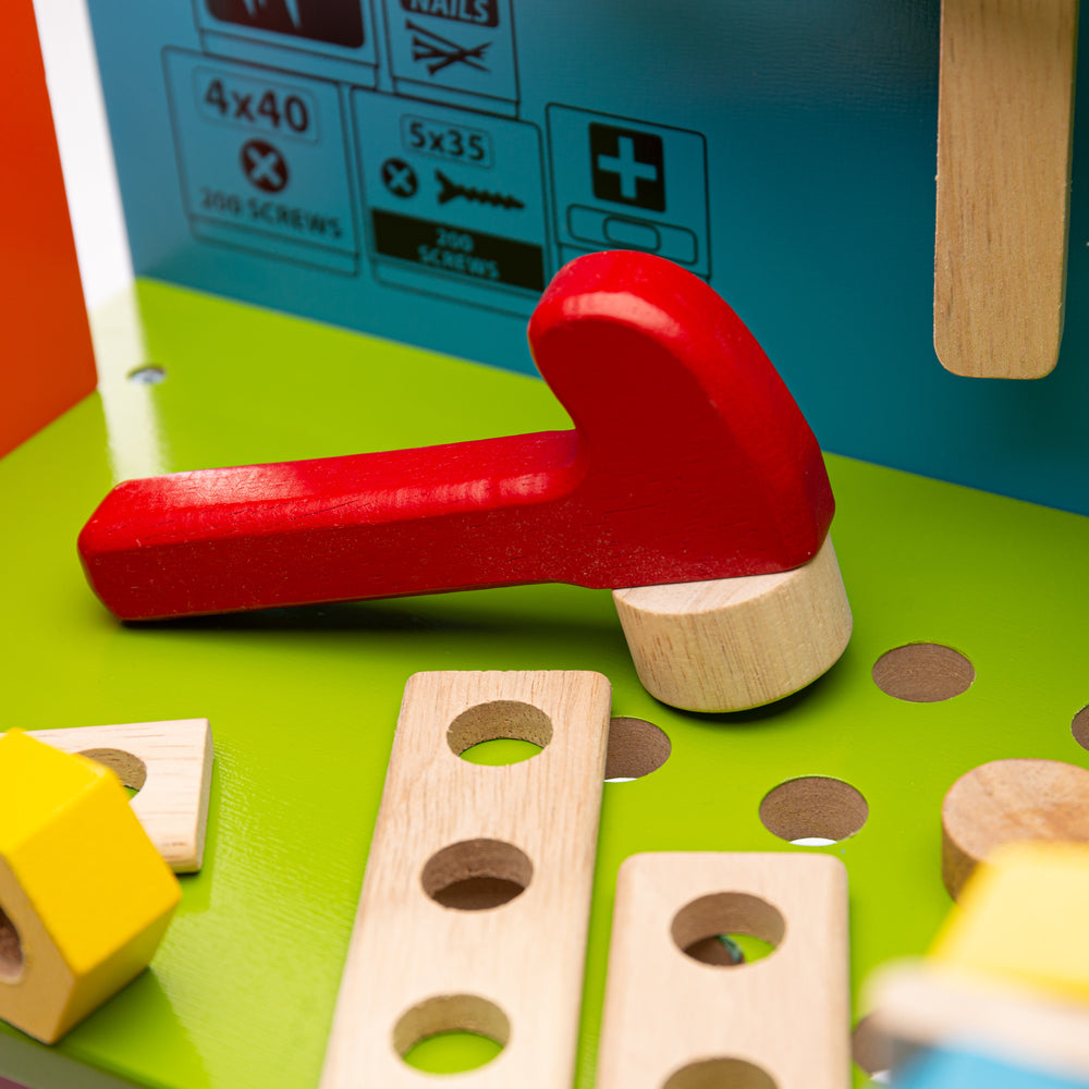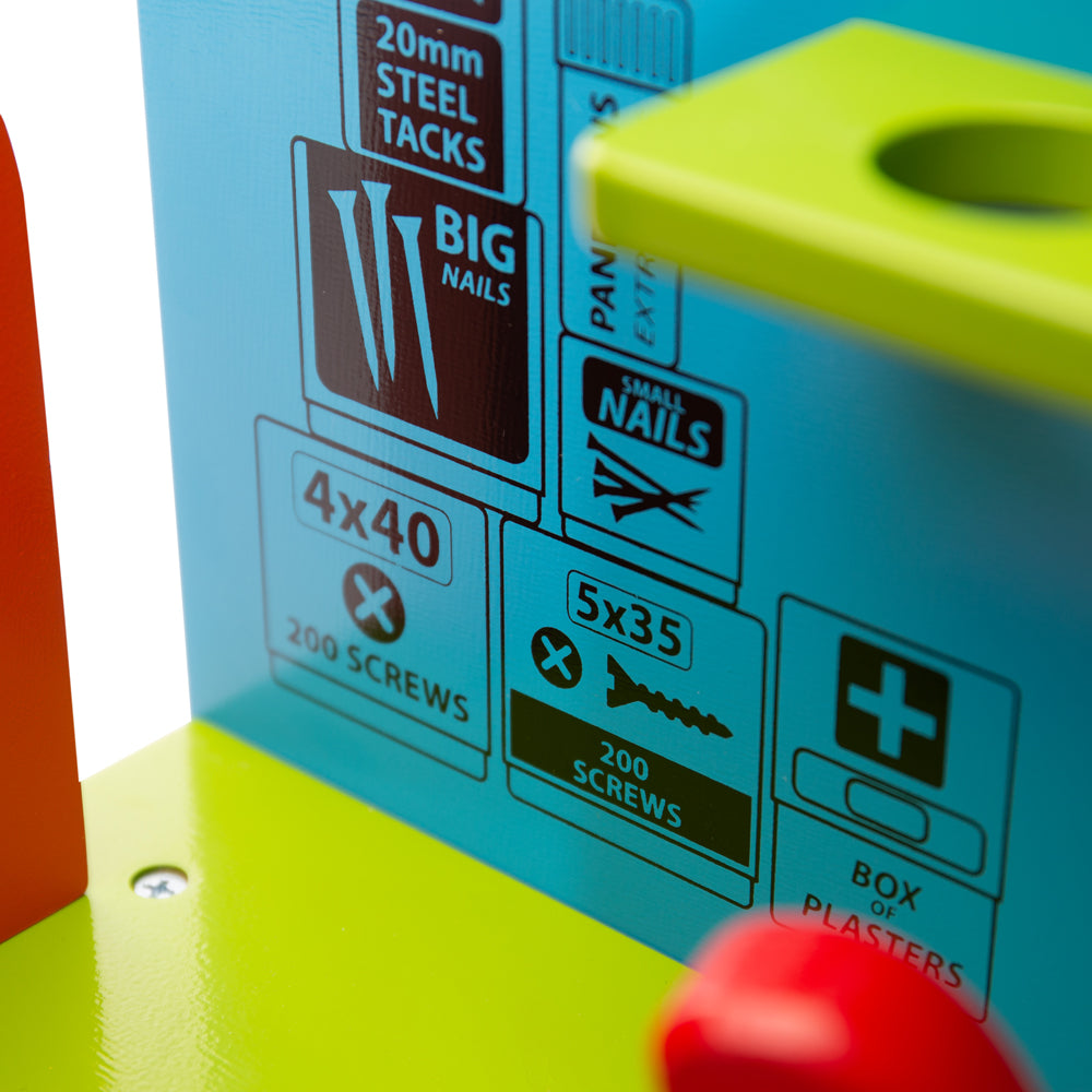 This sturdy, colourful wooden Powertools Kids Workbench is packed with features, including a clamp, spanner, power screwdriver, hammer, a vice, and plenty of nuts and bolts for mini builders.