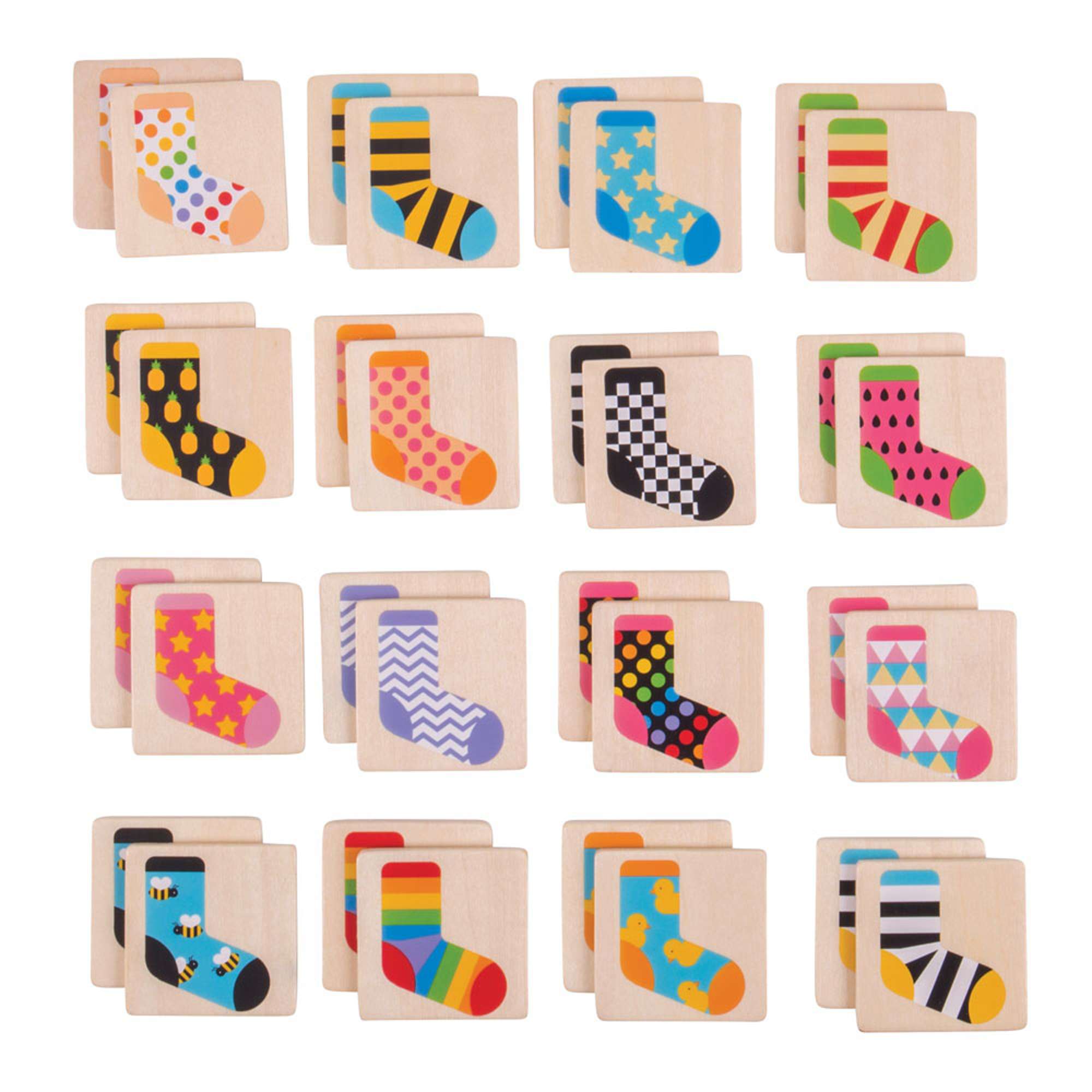 Bigjigs Toys Sock Memo Wooden Memory Game Enhances Kids’ Observation Skills and Concentration Through Play