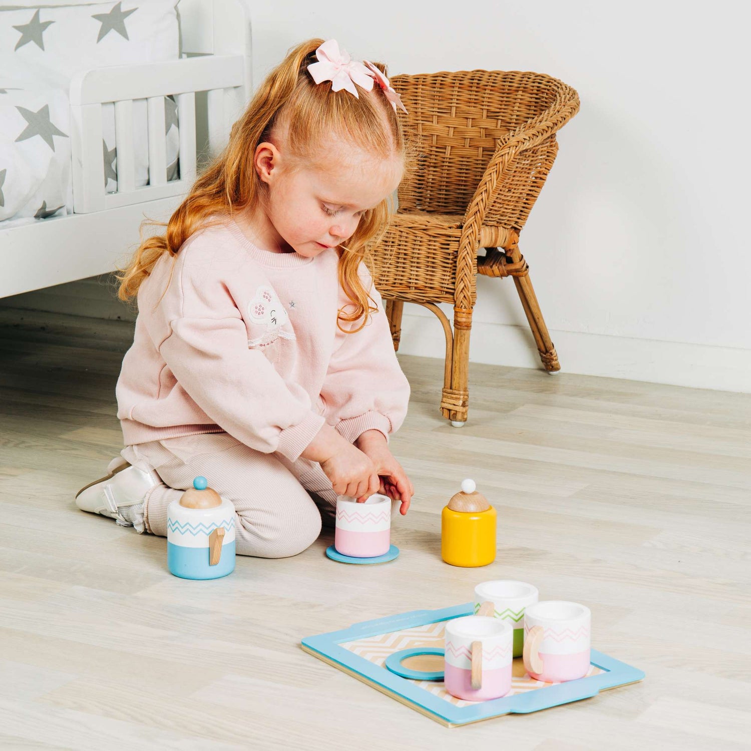 Wooden Tea Tray Set for Kids by Bigjigs Toys Inspires Imaginative Play with Safe FSC Certified Materials