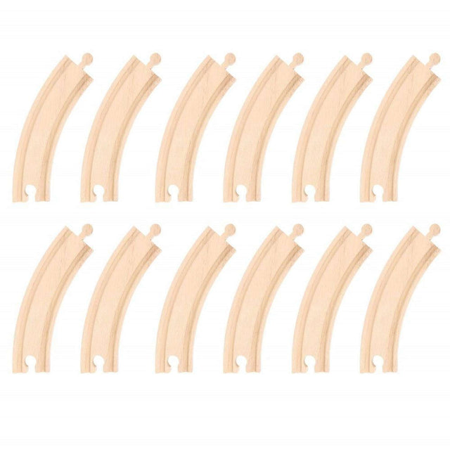 Wooden Train Track Extension Pack Long Curves 12 Pieces Compatible with Major Brands for Creative Play