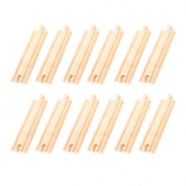 Medium Straights Wooden Train Track Pack of 12 by Bigjigs Rail Compatible with Major Railway Brands for Creative Play