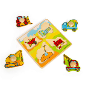 A bright and colourful puzzle with appealing pictures of construction vehicles, this peg puzzle is a great for introducing babies to shapes and colours. The peg puzzle is well made and my Son didn't have trouble gripping the pegs to place the shapes in the correct spaces. Although the age range says 12 months plus I would say you could give it to a smaller baby perhaps 10 months old with direct supervision. A fun stocking filler or birthday present.