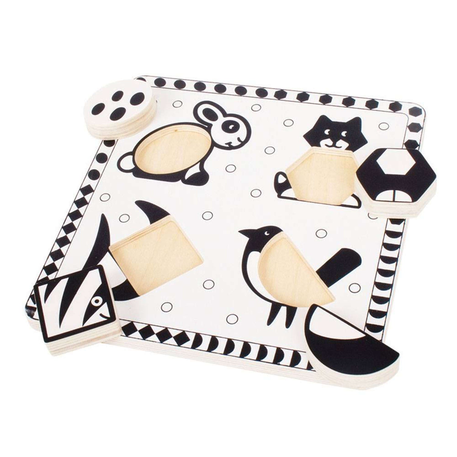 Pets Black and White Puzzle by Bigjigs Toys Promotes Early Visual Development and Fine Motor Skills for Toddlers