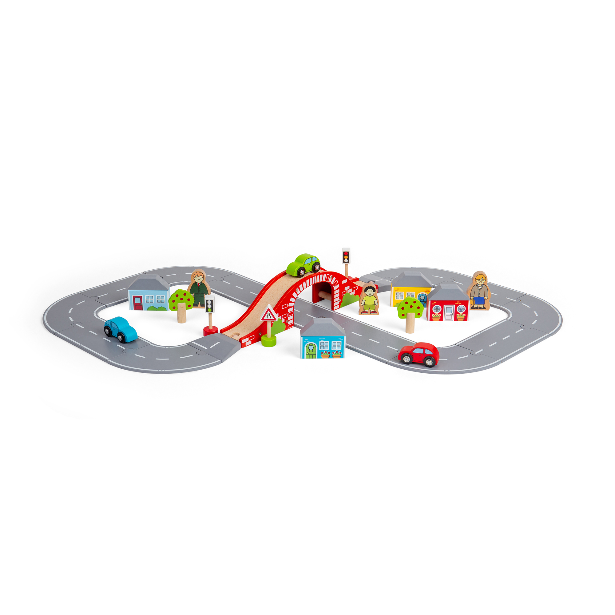 A fun twist on our best-selling wooden roadway set! Petite petrol heads will go car-azy for this colourful version of the Figure of Eight Roadway, which has been designed with realistic grey road track pieces and a bright red bridge.