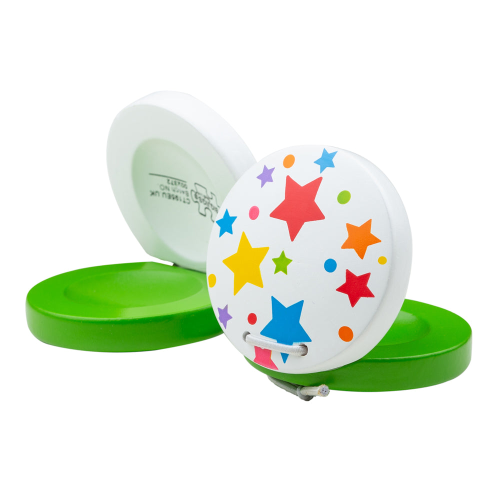 These colourful wooden Castanets make the perfect first musical toy. A simple wooden percussion instrument with many educational benefits. Little ones will have fun learning how to correctly grasp the castanets, and how to coordinate their fingers to produce a 'click'.