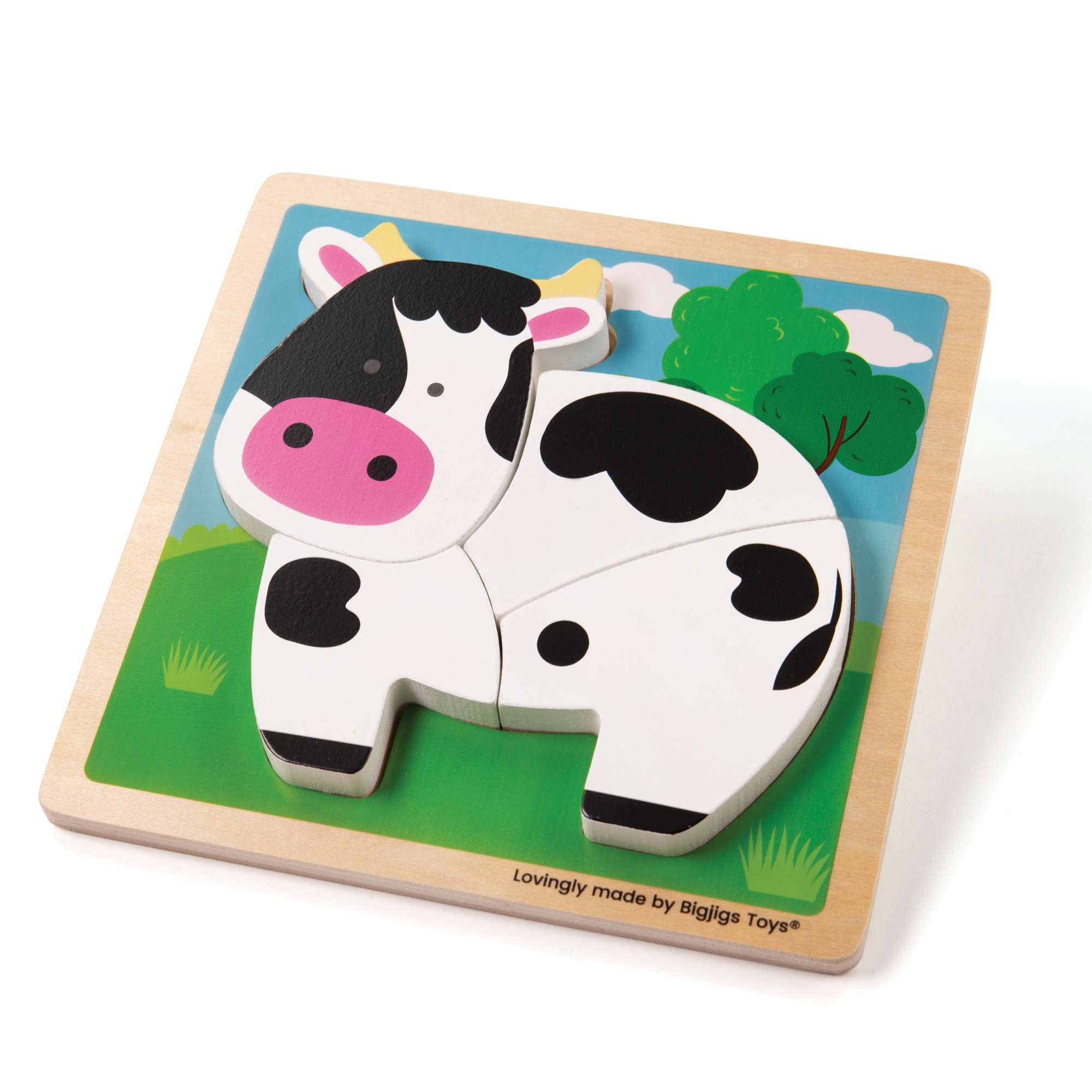Chunky Lift Out Cow Puzzle by Bigjigs Toys Enhances Toddler Fine Motor Skills with Safe FSC Wooden Pieces