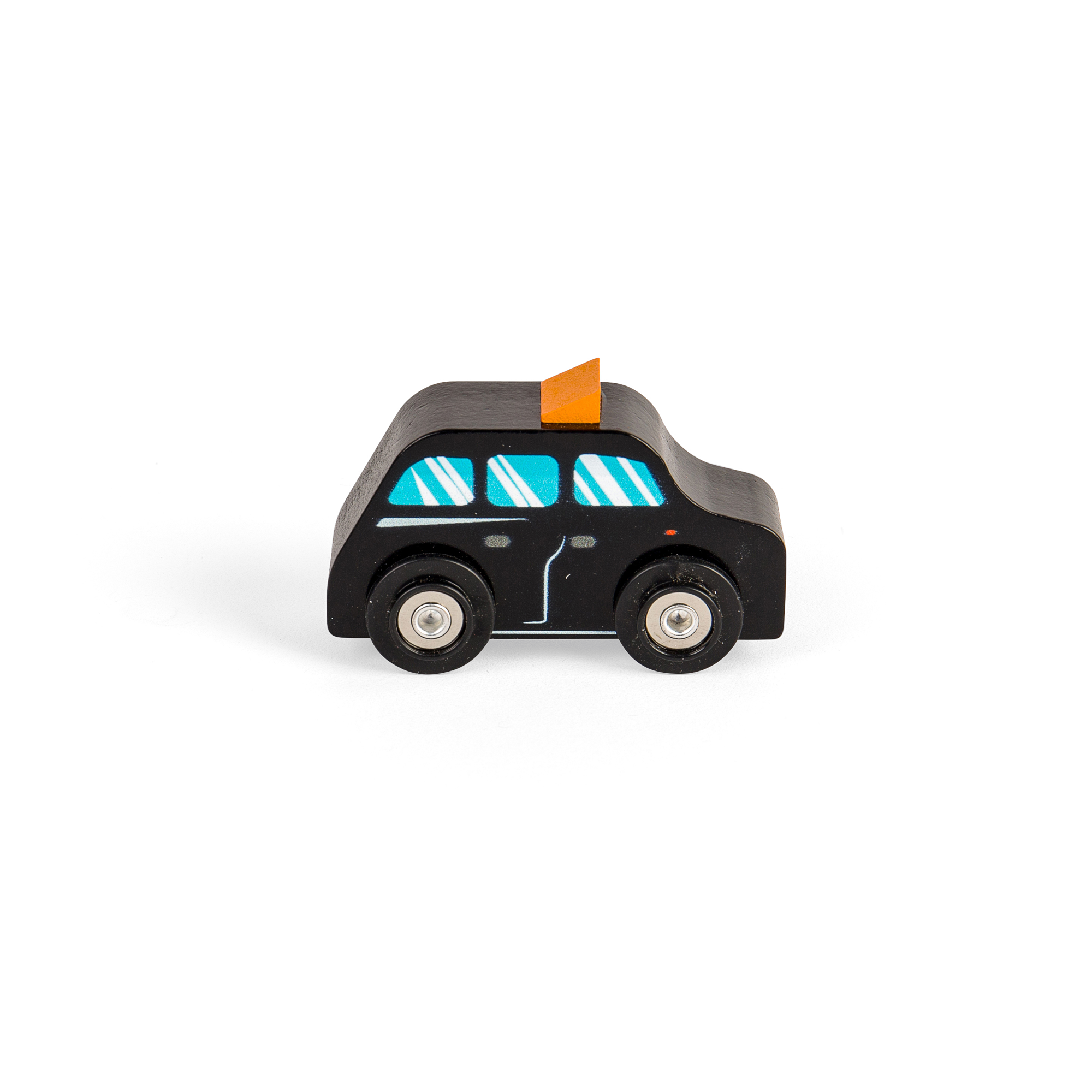 Time to get busy and add some extra traffic to your track layout! A black taxi cab, red double decker bus, fire engine, police car and a boat make up this fleet of city vehicles. Endless hours of creative role play fun. Made from high quality, sustainably sourced FSC® Certified wood. Conforms to current European safety standards.