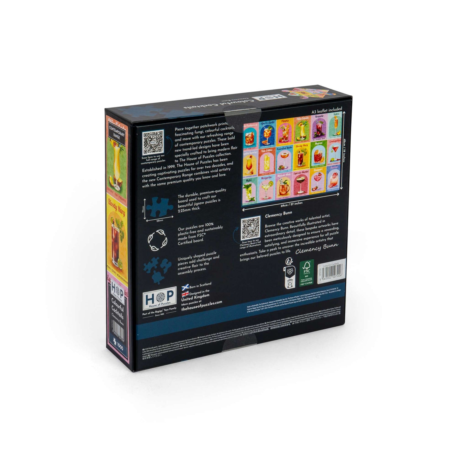 Get ready to start your next House of Puzzles project! Illustrated by extraordinary artist Clemency Bunn, the Colourful Cocktails 1000 piece jigsaw features a beautifully detailed scene to captivate both beginner and seasoned puzzle fanatics! All of our 1000 piece jigsaw puzzles are sustainably made from premium quality FSC® Certified board, promising a satisfying and seamless assembly experience. Completed puzzle dimensions: 48 x 69cm.