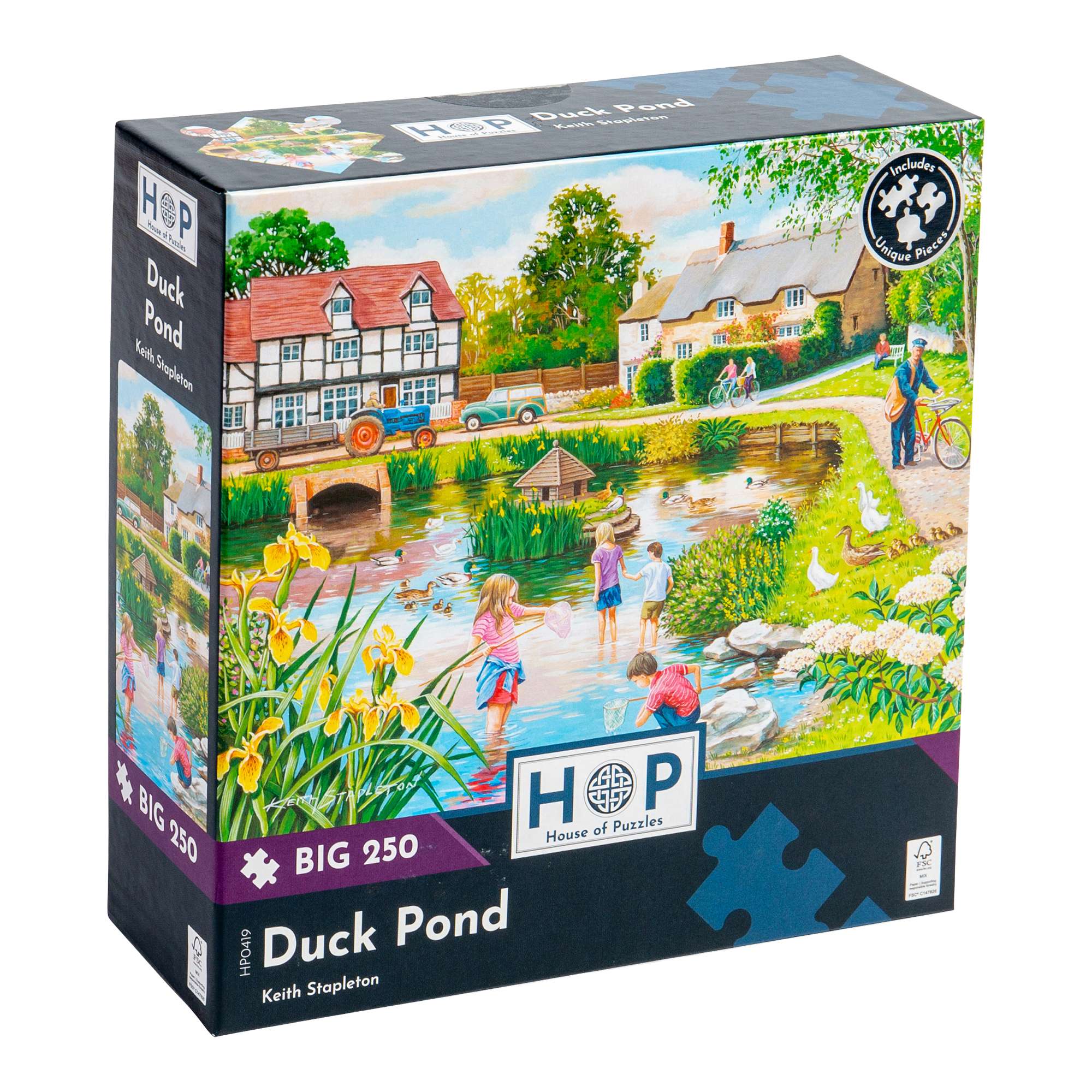 Hugely entertaining and enormously fun, our Big 250 piece jigsaw puzzles will tempt the whole family to get stuck in! The Duck Pond jigsaw puzzle features charming illustrations by amazing artist and has extra-large puzzle pieces for easier assembly, enabling all ages to join in! All of our Big 250 piece puzzles are sustainably made from premium quality FSC® Certified board. Completed puzzle dimensions: 34 x 48cm.
