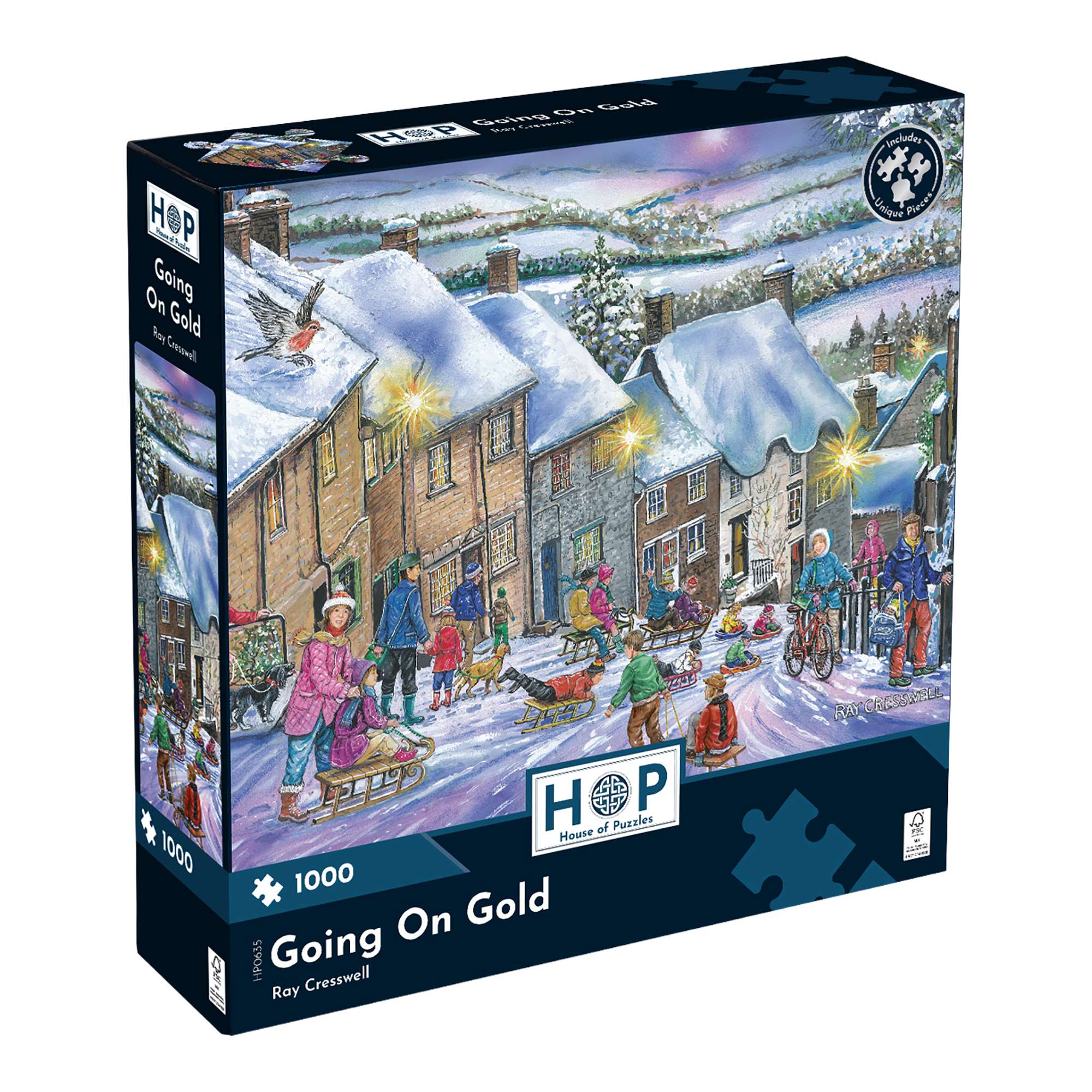 Get ready to start your next House of Puzzles project! Illustrated by extraordinary artist Ray Cresswell, the Going On Gold 1000 piece jigsaw features a beautifully detailed scene to captivate both beginner and seasoned puzzle fanatics! All of our 1000 piece jigsaw puzzles are sustainably made from premium quality FSC® Certified board, promising a satisfying and seamless assembly experience. Completed puzzle dimensions: 48 x 69cm.