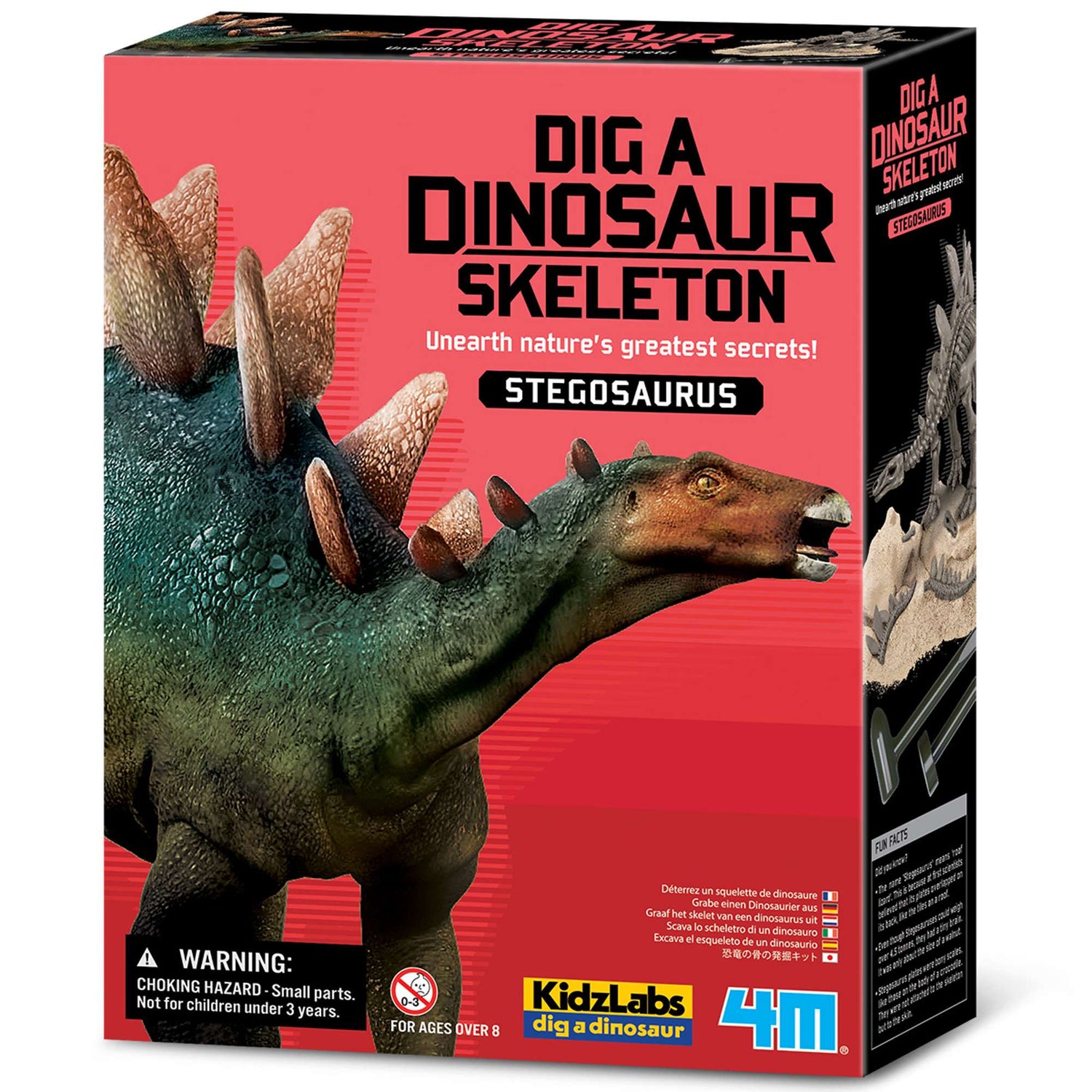 - The 4M KidzLabs Dig a Dinosaur Skeleton Stegosaurus kit features a realistic Stegosaurus skeleton model for assembly, fostering a sense of achievement and reinforcing detailed observation skills.