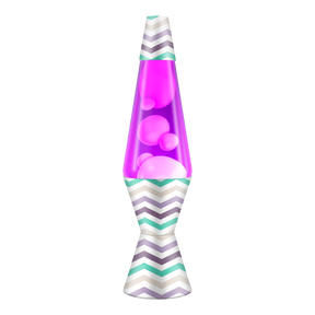 Bring the lido into your living space with Schylling's striking Poolside Cabana LAVA Lamp, featuring a soothing violet glow with a breezy poolside twist. Inside, the white wax dances among bright purple liquid, while the base and cap show off a geometric-striped pattern.