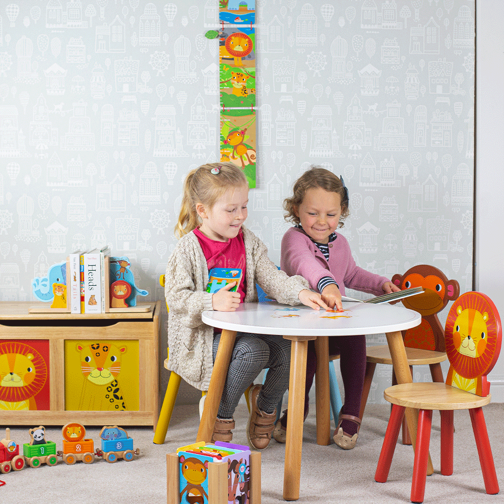 This kids chair is the ideal height for young children to perch on and is part of the Tidlo Safari furniture set with the Monkey, Leopard and Elephant; it coordinates with the Tidlo Jungle Animal Table.