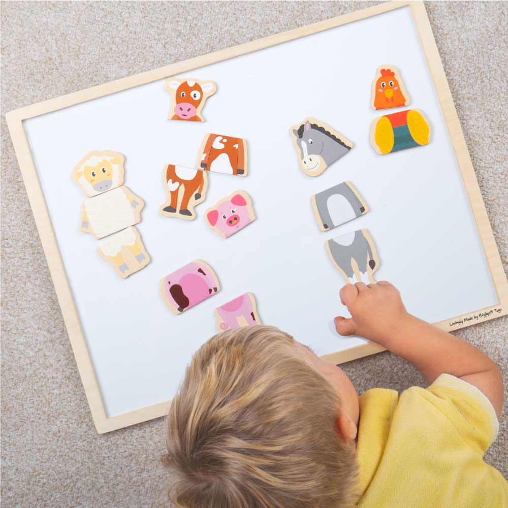 Encourage creativity and problem solving with the new Mag-Play Mix-Up range from Bigjigs Toys. Piece together the correct magnetic puzzle pieces to create a variety of different farm animals! Each magnet matches up across all 5 designs so working out the correct combination can be a tricky, but fun task! Or for added fun, mix and match the pieces to invent some new farm animals! Ideal for use on the fridge at home or on a magnetic board (BJE0141). Encourages creative thinking and storytelling. Made from high quality, responsibly sourced materials. Conforms to current European safety standards. Age 3+ years.