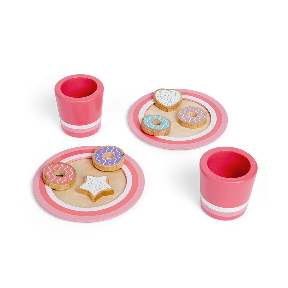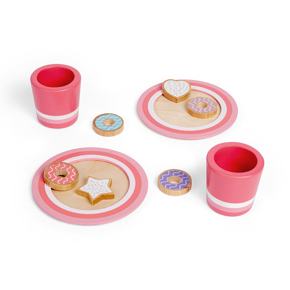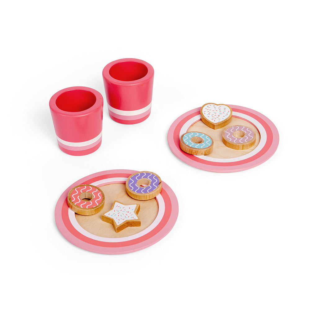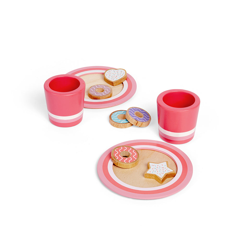 Tuck into some delicious milk and cookies, or share a sweet treat with a friend or family member. This delightful wooden play food set includes 6 wooden biscuits, 2 plates and 2 cups. A great way to inspire creative and imaginative play sessions, and a great addition to any wooden play kitchen. Develops dexterity and improves social skills from an early age. Complements the Bigjigs Toys pink cooking and roleplay range. Made from high quality, responsibly sourced materials. Conforms to current European safety standards. Age 3+ years.