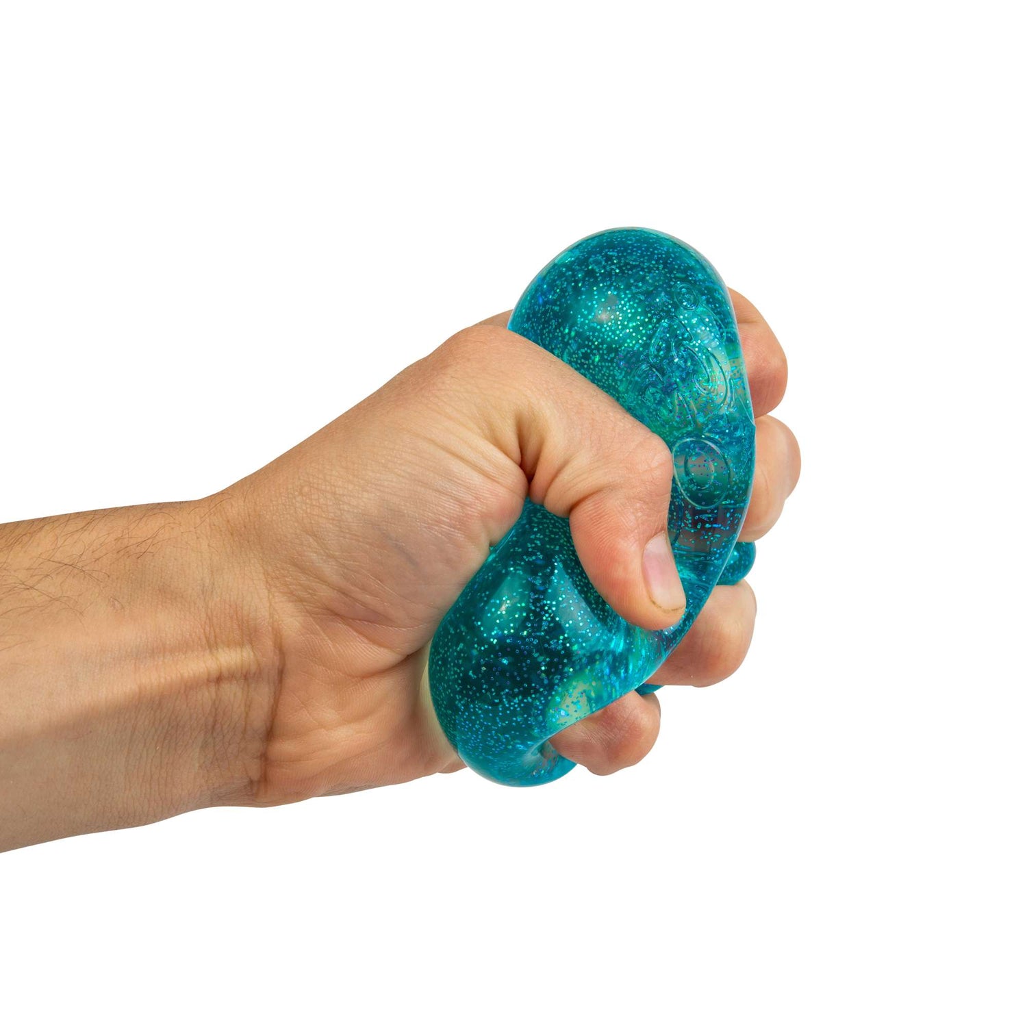 This cube-shaped stress ball was designed for little hands to squeeze, smush and squish. Like the original Nice Cube, this glittery sensation is filled with a non-toxic gel -like material, and has a strong squishy feel that bounces back for a satisfying sensory experience. Watch the glitter float and glow as you grip, stretch and squash the cube.