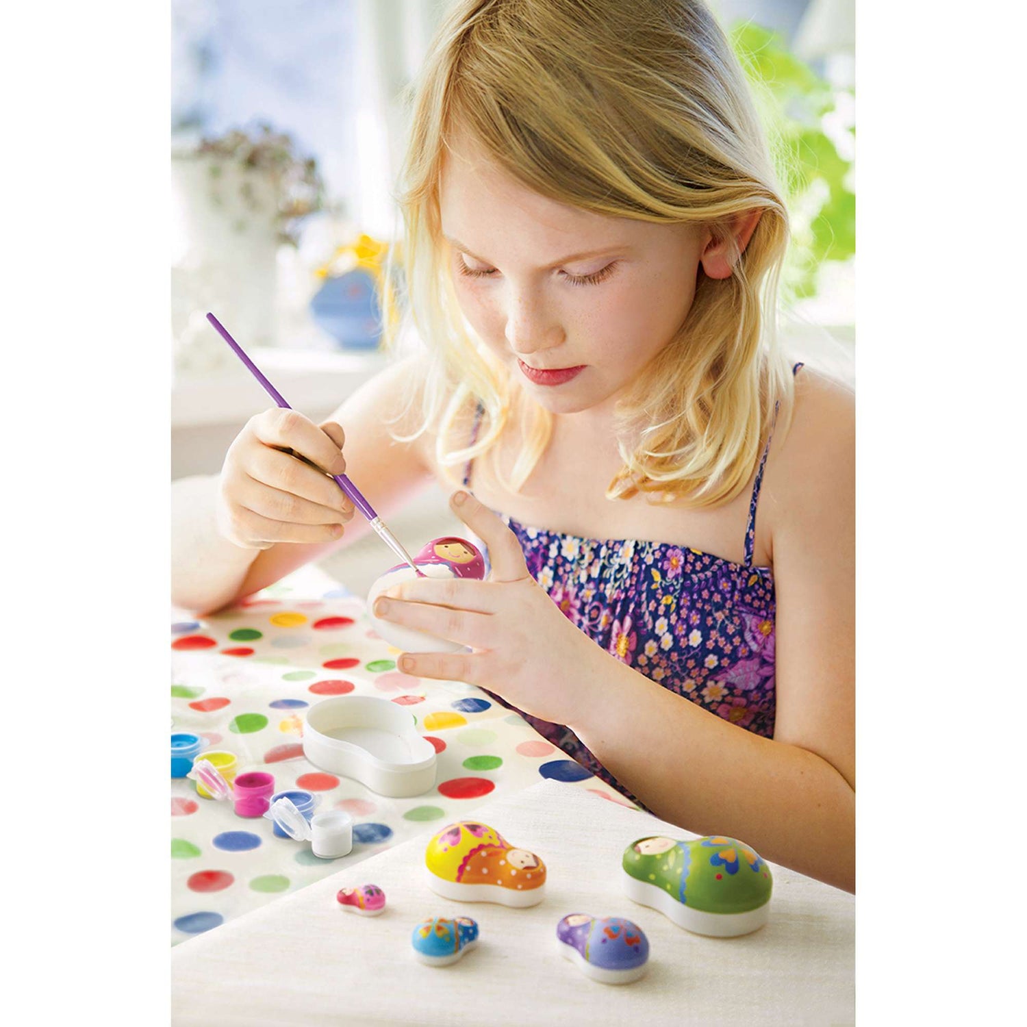 - The 4M Paint Your Own Trinket Box Russian Dolls kit inspires creativity, helping children express their individuality by customising six charming Russian doll trinket boxes.