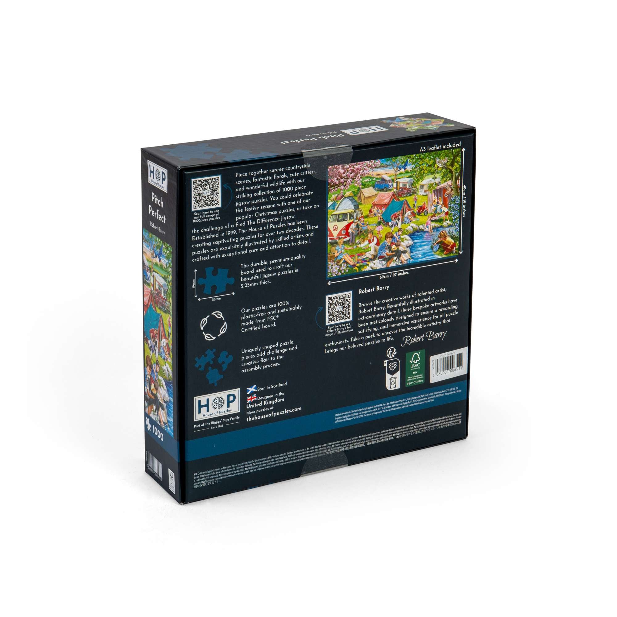 Get ready to start your next House of Puzzles project! Illustrated by extraordinary artist Robert Barry, the Pitch Perfect 1000 piece jigsaw features a beautifully detailed scene to captivate both beginner and seasoned puzzle fanatics! All of our 1000 piece jigsaw puzzles are sustainably made from premium quality FSC® Certified board, promising a satisfying and seamless assembly experience. Completed puzzle dimensions: 48 x 69cm.