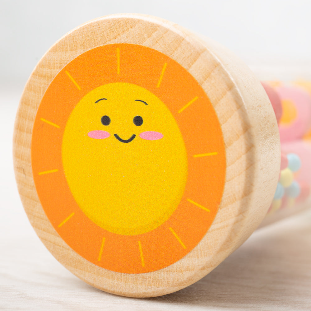 Our wooden Rainmaker comes complete with cute illustrations on either end - a sun and cloud. A great pocket money gift or stocking filler. Specially designed for little hands to hold and to develop hand-eye coordination.