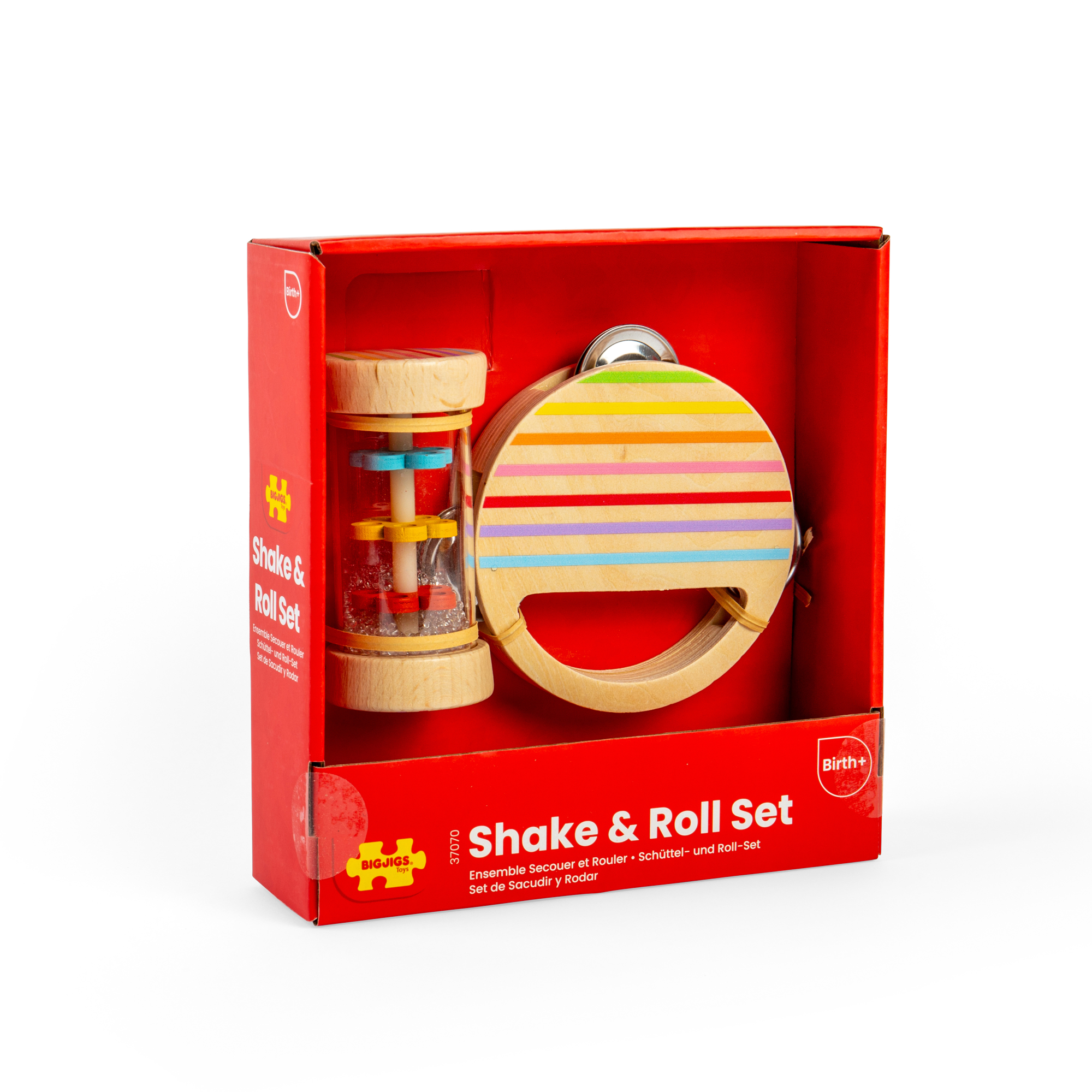 Bigjigs Toys Shake & Roll Set for Babies Promotes Sensory Development Fine Motor Skills with Wooden Musical Instruments