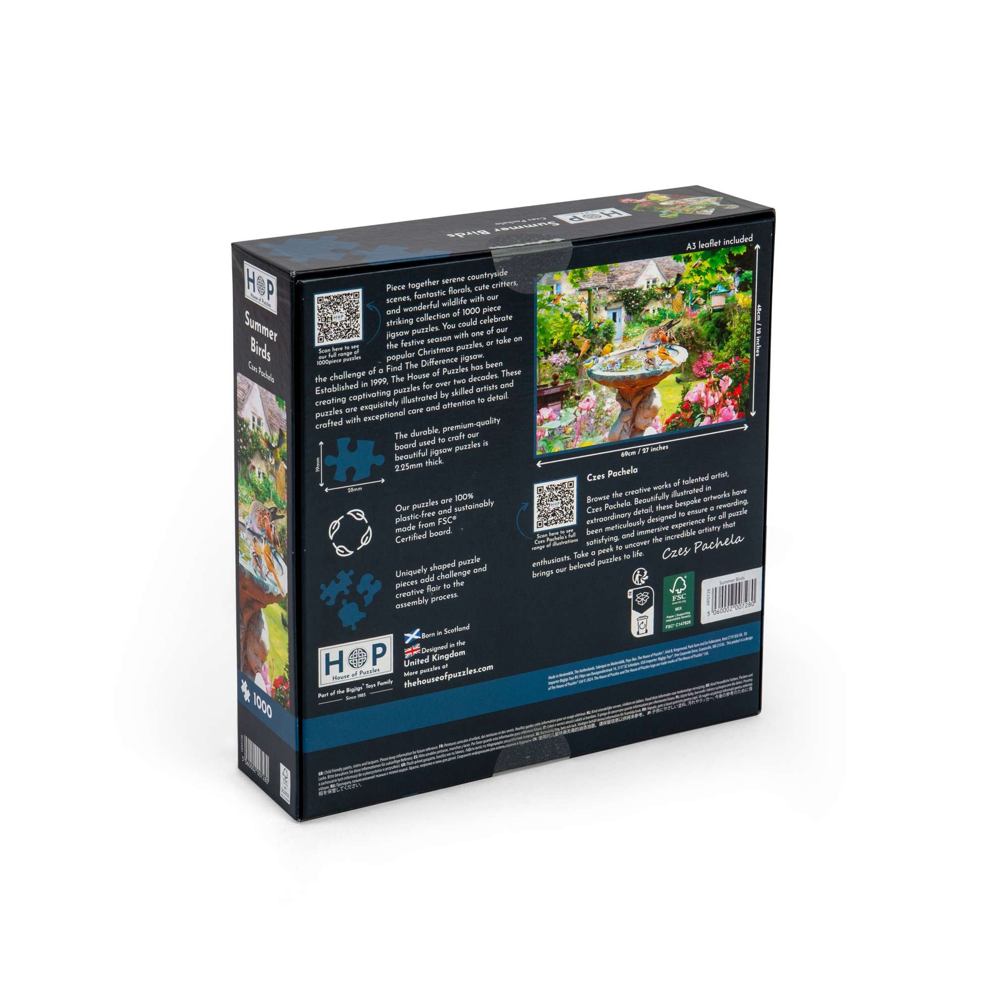 Get ready to start your next House of Puzzles project! Illustrated by extraordinary artist Czes Pachela, the Summer Birds 1000 piece jigsaw features a beautifully detailed scene to captivate both beginner and seasoned puzzle fanatics! All of our 1000 piece jigsaw puzzles are sustainably made from premium quality FSC® Certified board, promising a satisfying and seamless assembly experience. Completed puzzle dimensions: 48 x 69cm.
