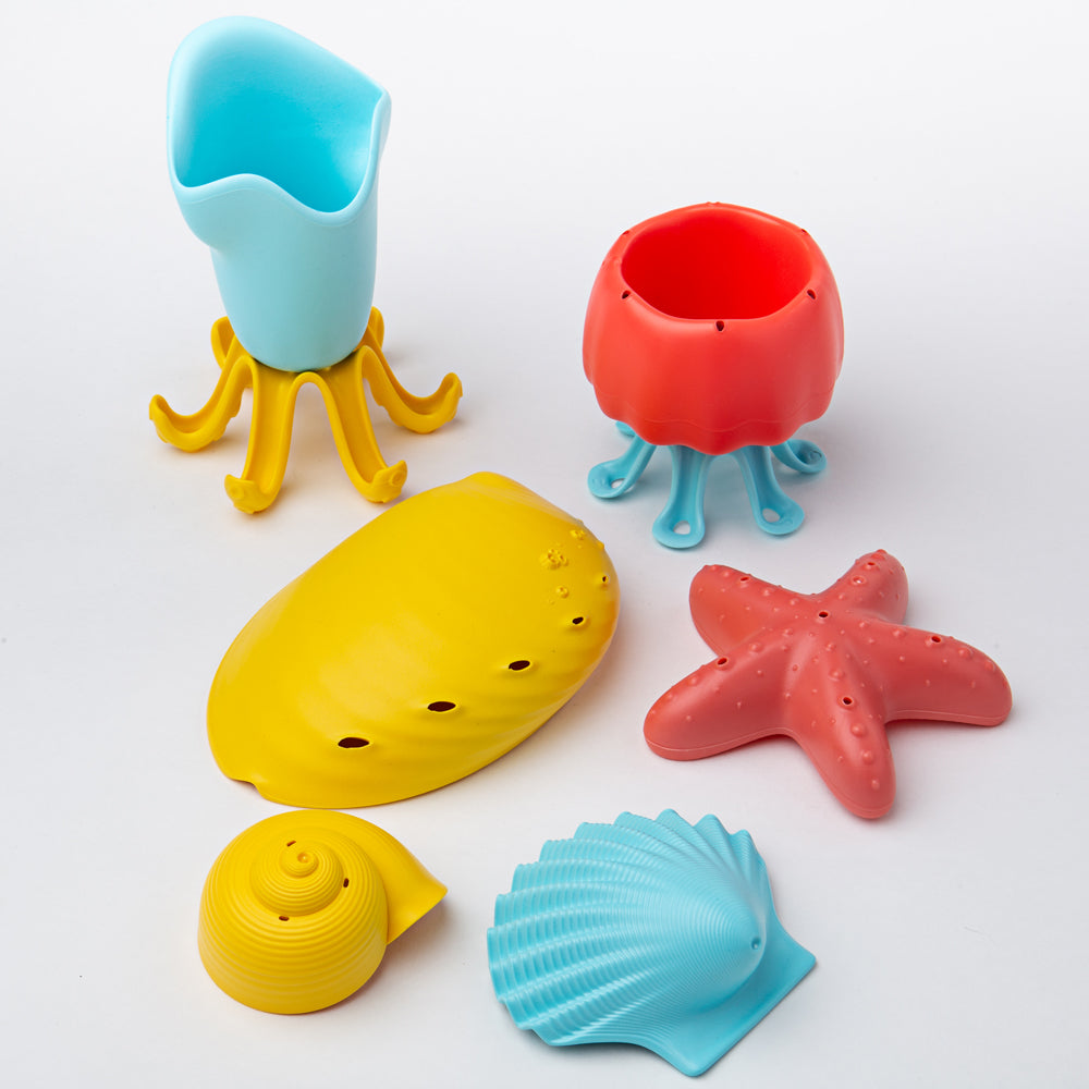 Say goodbye to tears and tantrums at bath time with the Green Toys Tide Pool Bath Set. This 7-piece water toy set is made up of animals and shells that you may find in a rock pool including a starfish, scallop shell, moon snail shell, seaweed, jellyfish and squid!
