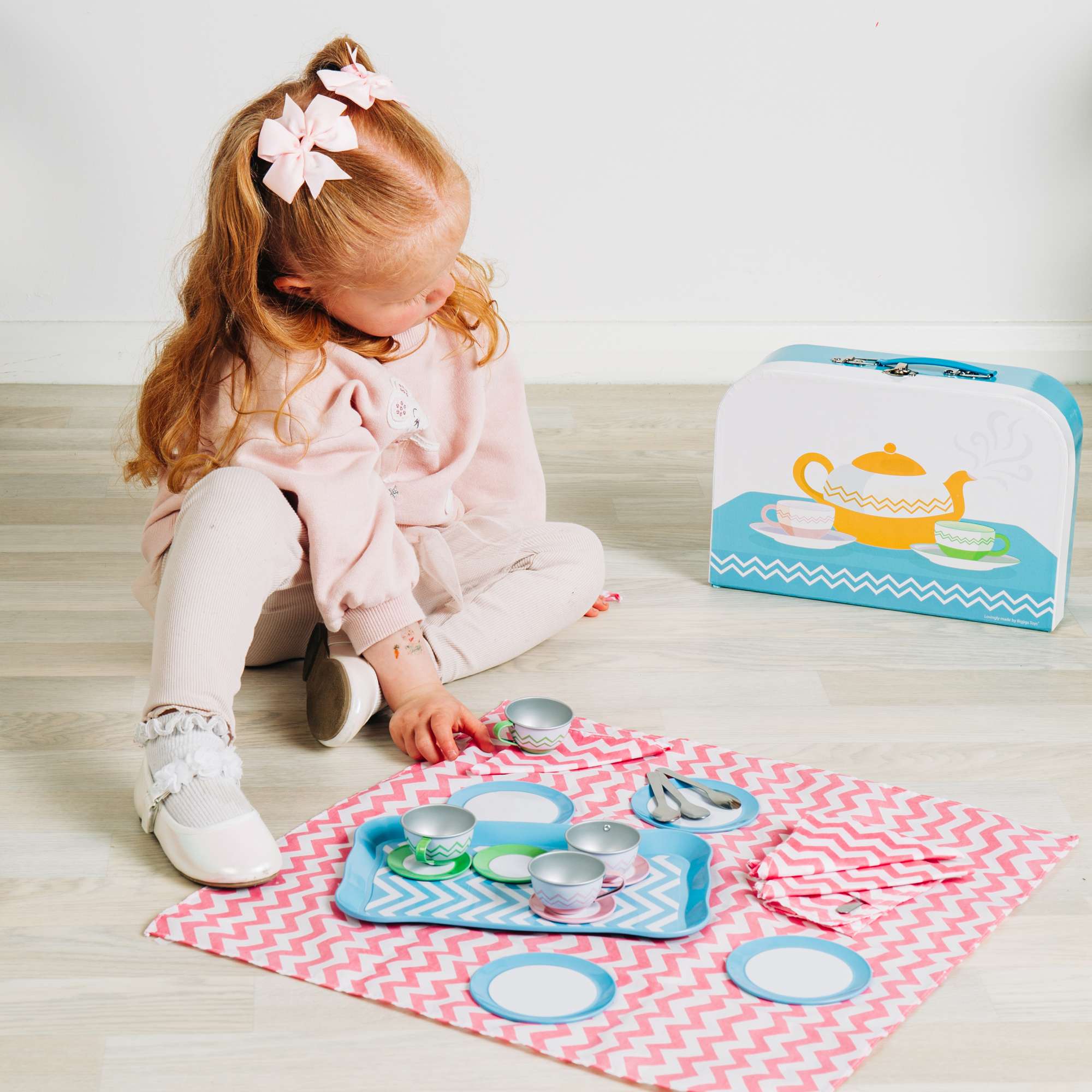 Tin Tea Set for Kids from Bigjigs Toys Promotes Imaginative Play with Carry Case and Complete Afternoon Tea Accessories