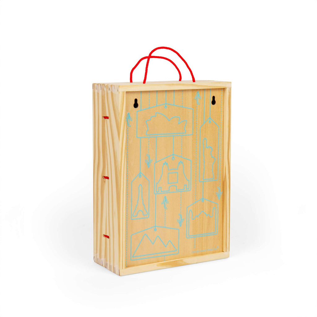 The set comes with a collection of wooden landmarks and a fold-out map, which can be stored inside the magnetic-sealed box once playtime is over. A perfect travel toy for on-the-go fun and imaginative, open-ended play.