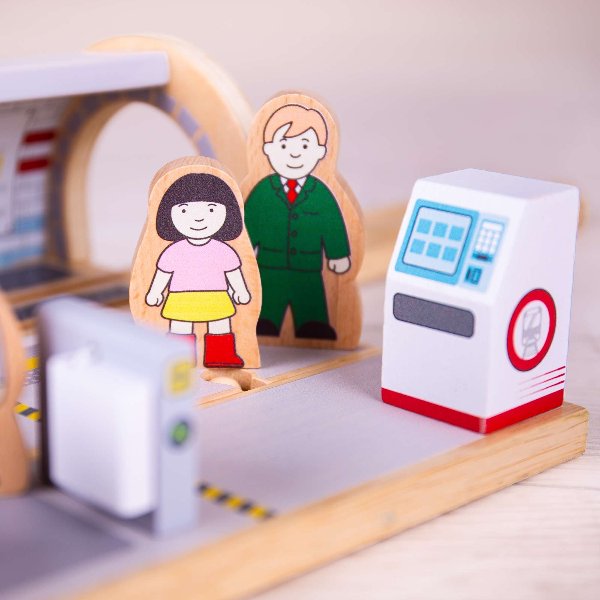 With this impressive wooden train accessory, commuters can buy their tickets, head through the ticket barrier and jump on the next train. This awesome train toy comes complete with a ticket machine, ticket barriers and 3 commuters.